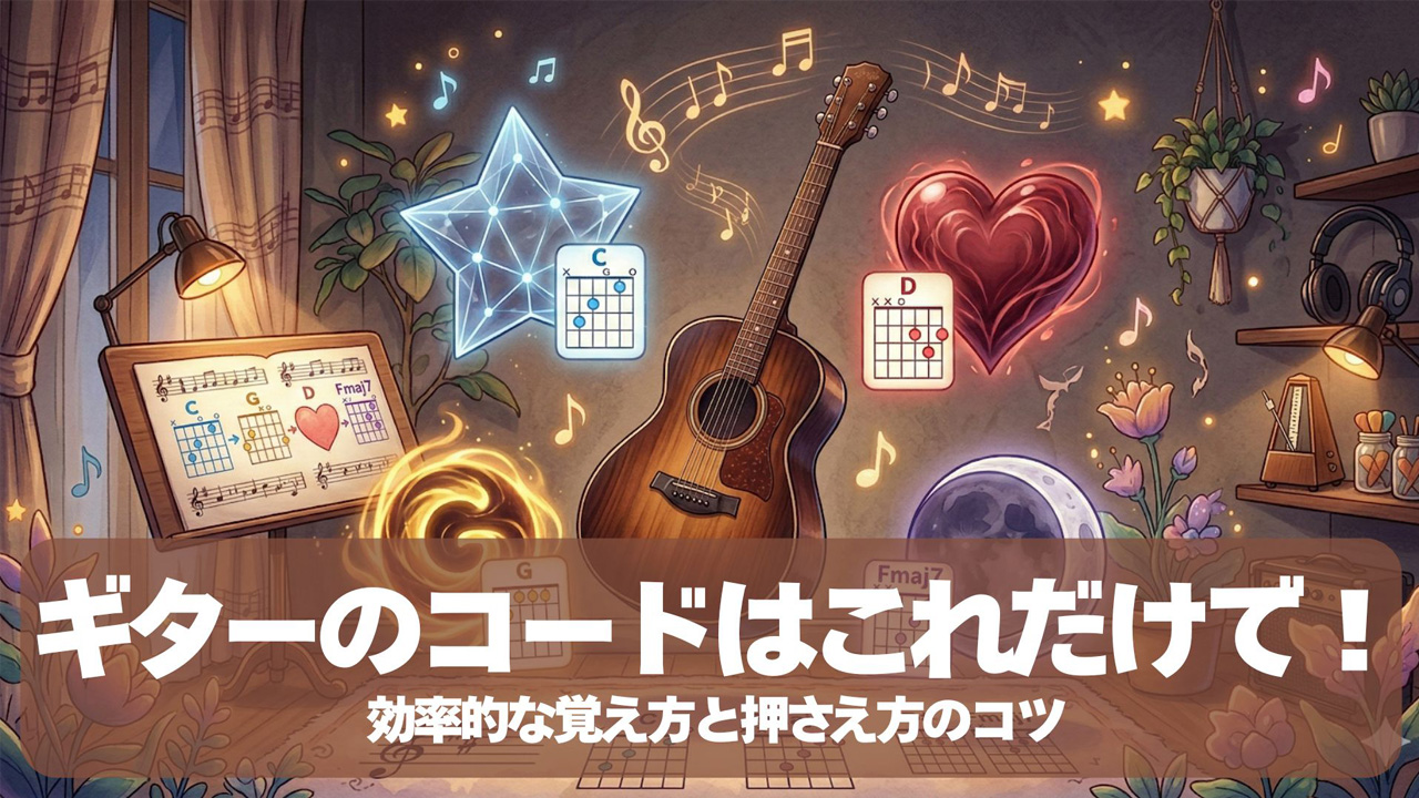 この記事では、ギターコード帳の丸暗記で挫折しそうなあなたに向けて、初心者が「絶対に覚えるべきコード」だけを厳選し、レベル別に効率的な覚え方と綺麗に音を鳴らすコツを解説します。